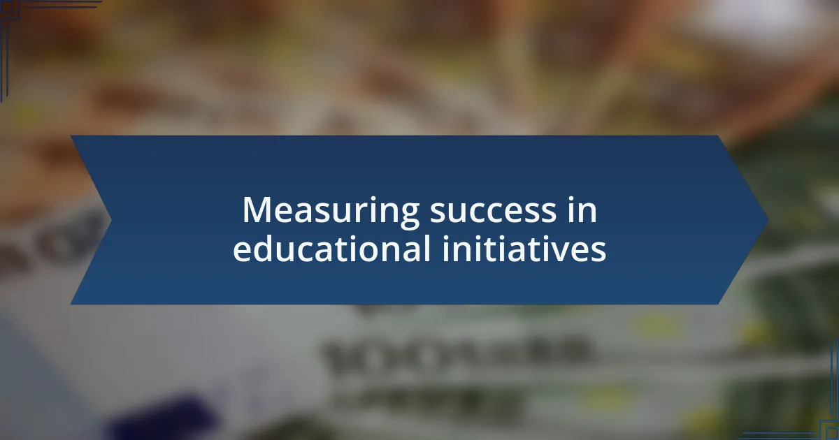 Measuring success in educational initiatives requires more than just standardized test scores. During my tenure with a nonprofit organization, I learned that qualitative feedback from students and teachers can provide a richer perspective on the effectiveness of our programs. For instance, after implementing a mentorship program, we conducted interviews that revealed emotional growth in students, which wasn’t reflected in any traditional metrics. Isn’t it fascinating how success can be multifaceted?