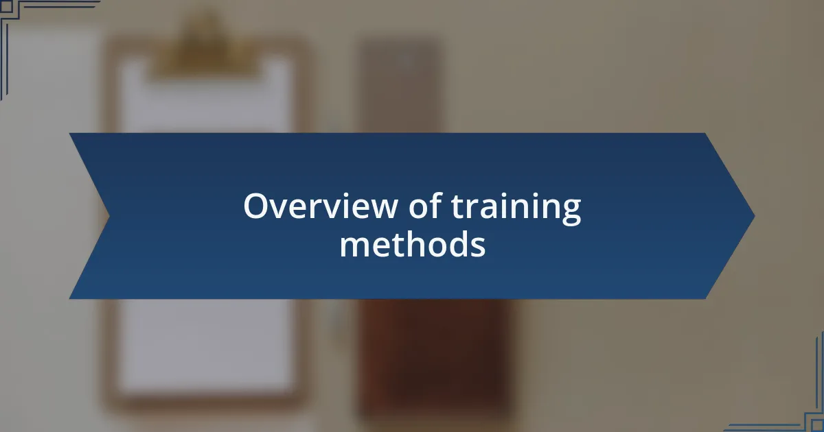When considering various training methods, it’s interesting to note how dramatically they can impact learning outcomes. I remember my first experience with in-person training—there’s something undeniably electric about being in a room with others, sharing not just knowledge but energy and ideas. It made me wonder, do we sometimes underestimate the power of face-to-face interaction?